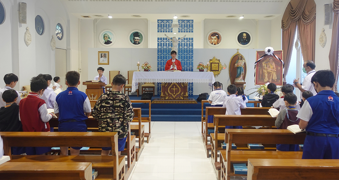คุณพ่อบัญชา กิจประเสริฐ อธิการโรงเรียนเซนต์ดอมินิก กล่าวต้อนรับพร้อมมอบของที่ระลึกแก่เจ้าหน้าที่พยาบาล งานอนามัยโรงเรียน ศูนย์บริการสาธารณสุข 2 วัดมักกะสัน สำนักอนามัย กรุงเทพมหานคร ในโอกาสมาบรรยายเรื่องการสร้างเสริมภูมิคุ้มกันโรคคอตีบและบาดทะยัก พร้อมทั้งฉีดวัคซีน เพื่อเป็นการสร้างภูมิคุ้มกันให้กับนักเรียนชั้น ป.6 เมื่อวันศุกร์ที่ 28 พฤศจิกายน พ.ศ. 2568 ณ โถงอาคารมารีย์ฯ โรงเรียนเซนต์ดอมินิก VIEW MORE PHOTOS