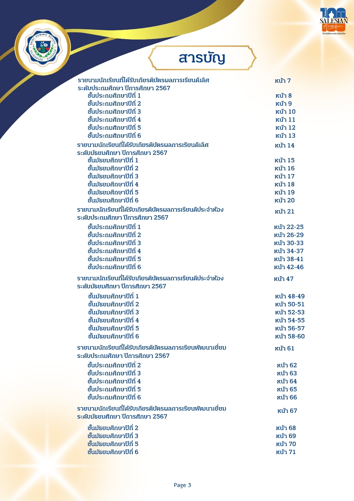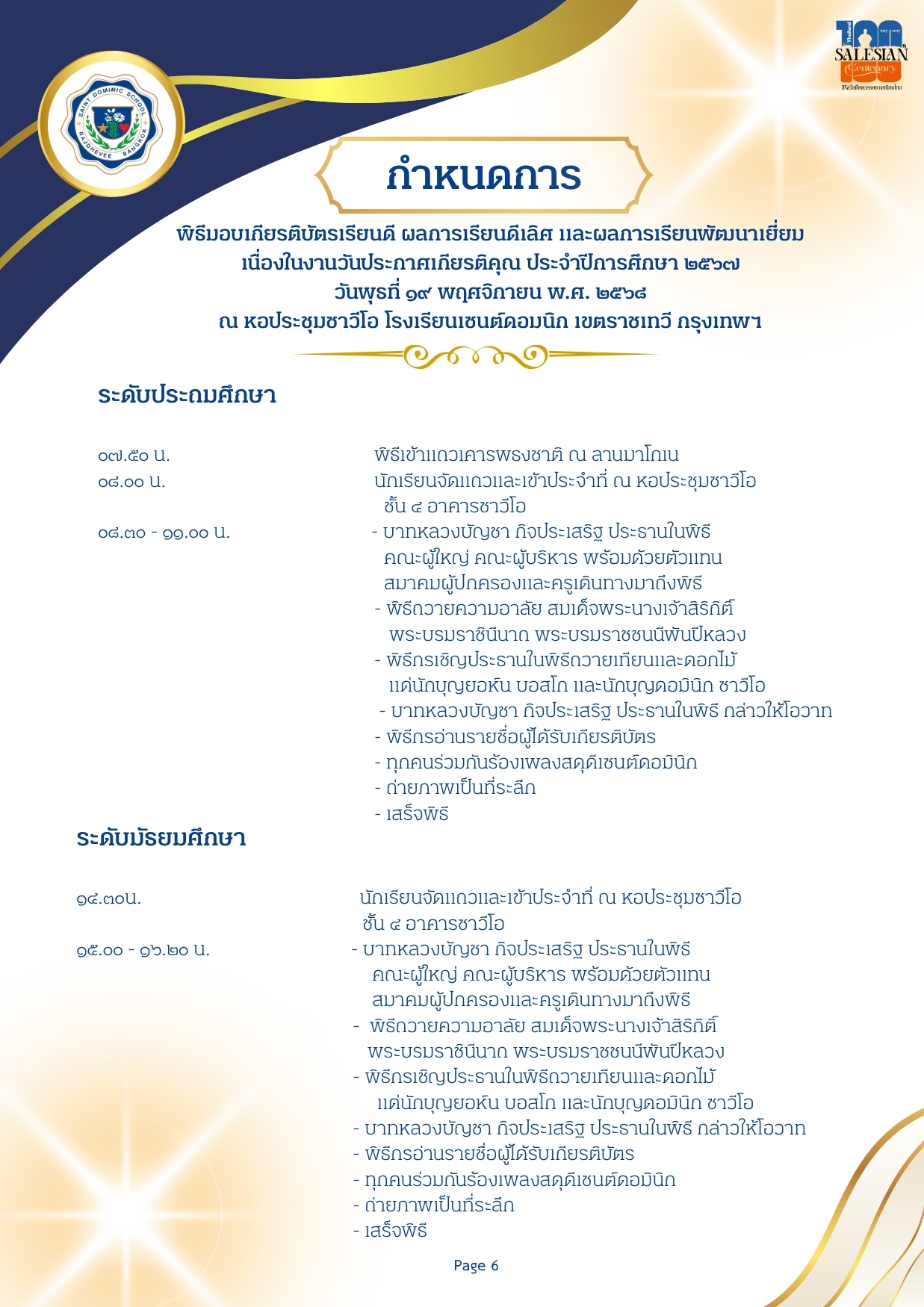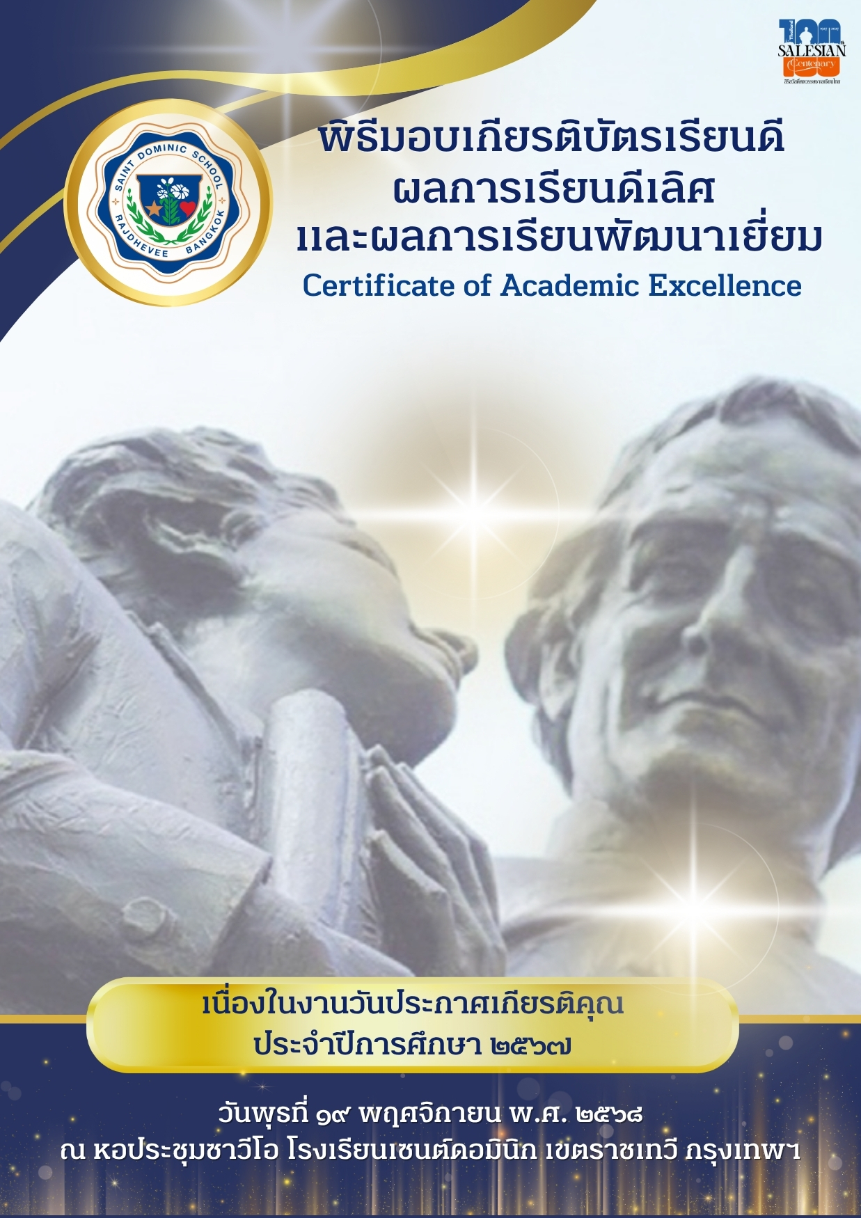 กำหนดการงานวันประกาศเกียรติคุณ และรายชื่อนักเรียนที่ได้รับเกียรติบัตรเรียนดี ผลการเรียนดีเลิศ และผลการเรียนพัฒนาเยี่ยม ปีการศึกษา 2567 พ.19 พ.ย. 68 (7 พ.ย. 68)