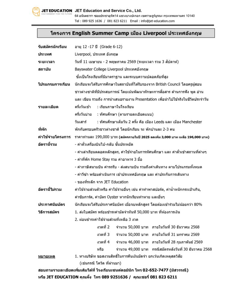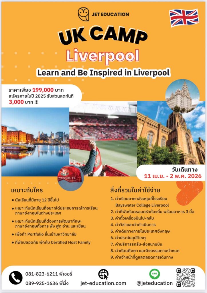 โครงการ English Summer Camp เมือง Liverpool ประเทศอังกฤษ (11 เม.ย.-2 พ.ค. 69)