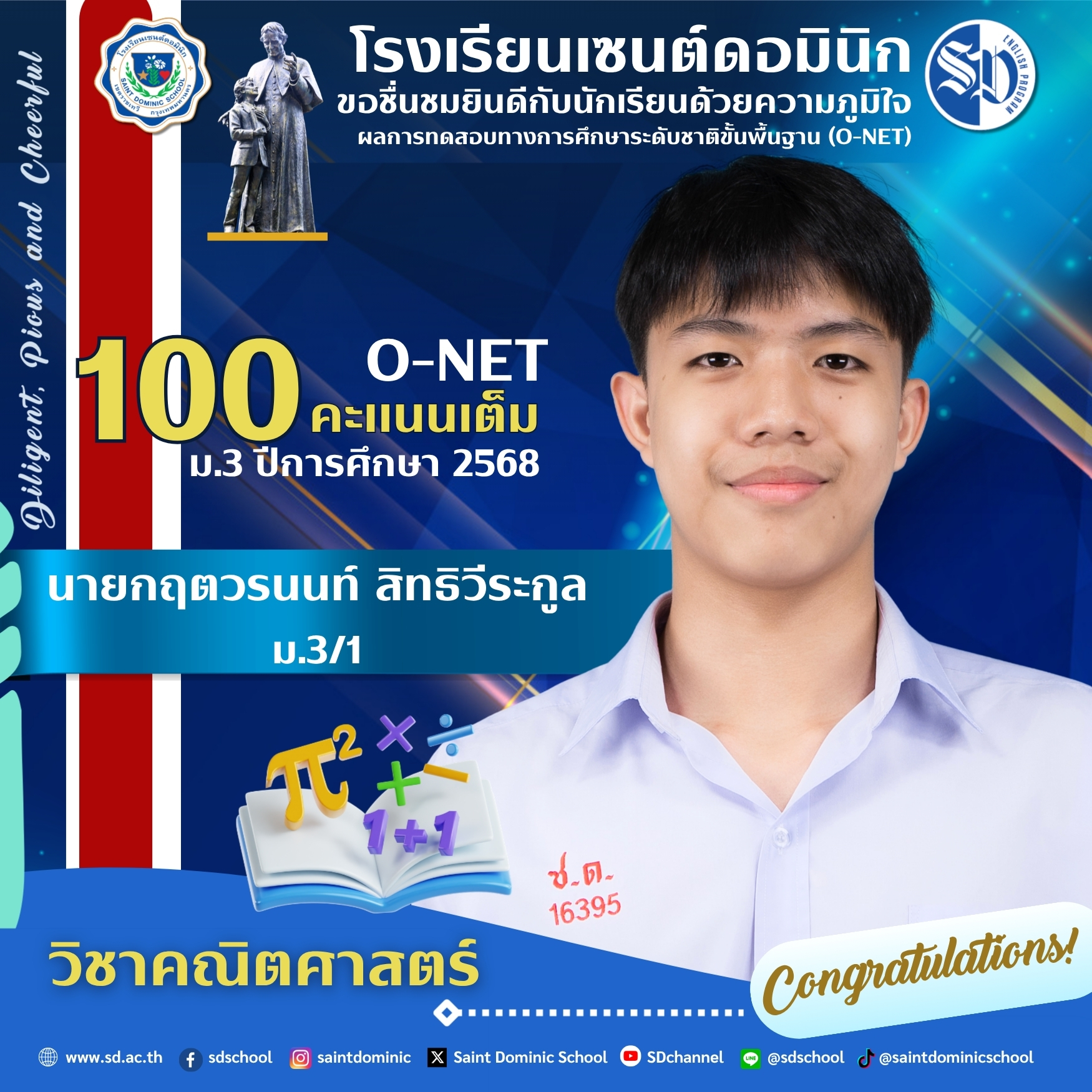 🏨โรงเรียนเซนต์ดอมินิก ขอชื่นชมยินดีกับนักเรียนด้วยความภูมิใจ