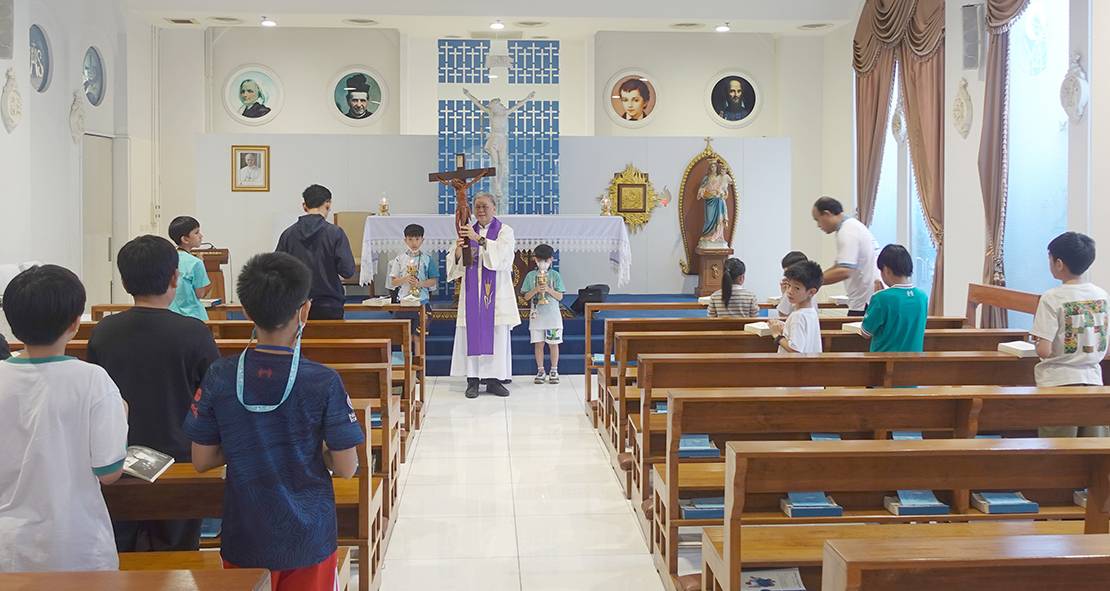 เมื่อวันศุกร์ที่ 27 มีนาคม พ.ศ. 2569 คุณพ่อบัญชา กิจประเสริฐ อธิการโรงเรียนเซนต์ดอมินิก เป็นประธานในพิธีเดินรูป 14 ภาค จัดโดย ฝ่ายอภิบาลโรงเรียนเซนต์ดอมินิก ในทุกวันศุกร์ของเทศกาลมหาพรต เพื่อเป็นการติดตามพระเยซูเจ้าบนทางกางเขนของพระองค์ ด้วยการสวดภาวนาและรำพึงถึง 14 สถาน เป็นกิจศรัทธาของคริสตชน ที่ปฏิบัติกันโดยเฉพาะอย่างยิ่งในช่วงเทศกาลมหาพรตและสัปดาห์ศักดิ์สิทธิ์ ซึ่งเริ่มเมื่อวันศุกร์ที่ 20 กุมภาพันธ์ พ.ศ. 2569 ณ วัดแม่พระองค์อุปถัมภ์ อาคารมารีย์ฯ โดยมีคุณครู ผู้ปกครอง และนักเรียนคาทอลิกร่วมพิธีด้วย