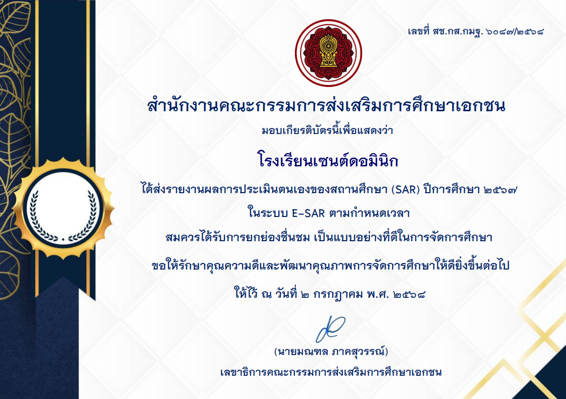 รายงานการประเมินตนเอง โรงเรียนเซนต์ดอมินิก